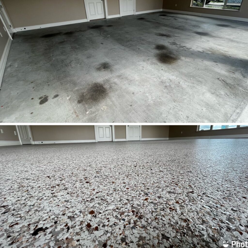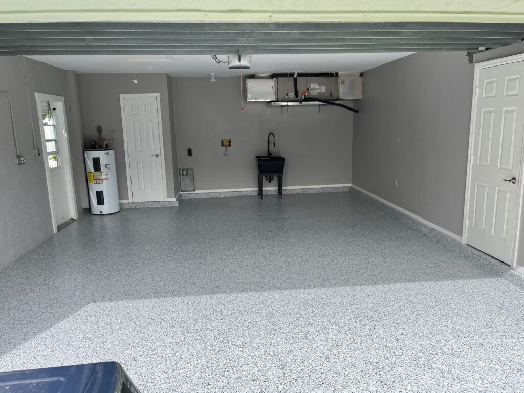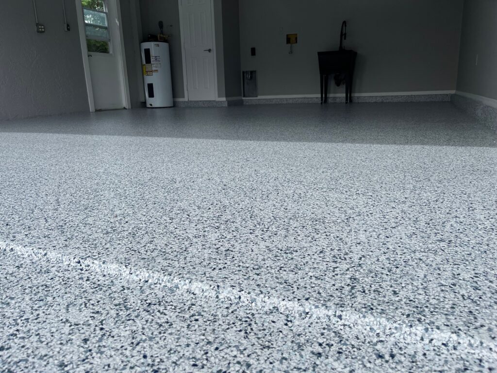 Our most popular service we offer, the epoxy flake system is an incredibly durable and beautiful system. Loved for its wide range of applications, the flake system is commonly used in garages, porches, patios, pool decks, and much more. Our flake system also works very well in commercial settings when a tough, low maintenance, easily cleanable surface is needed.